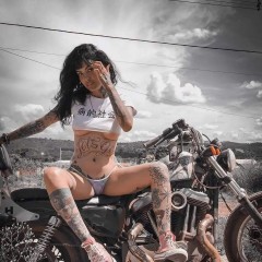 motorbike ink brunette girl K 545454 P