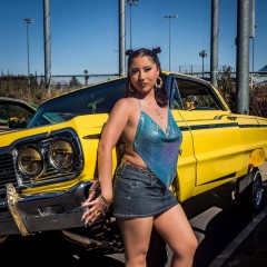 yellow lowrider car girl 45