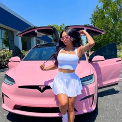 car pink tesla girl 0214584