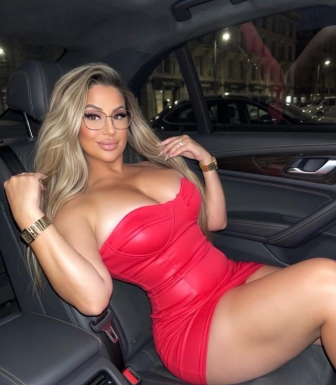 blonde in car in red 15288