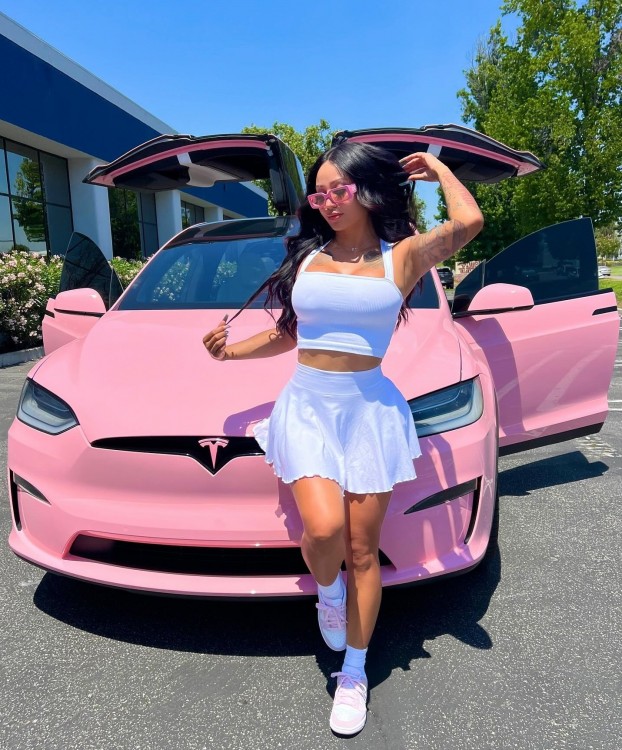 car pink tesla girl 0214584