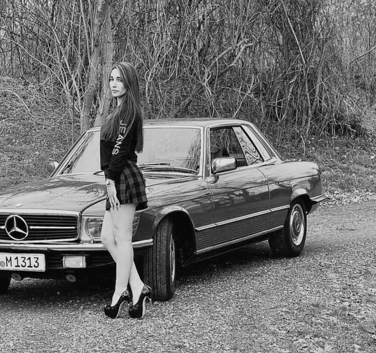 mercedes w107 girl 0036963396 BW