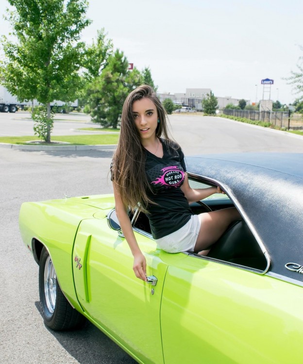 musle car and girl 421333396