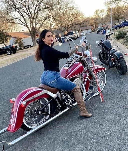 red motorbike brunette lady 030004441