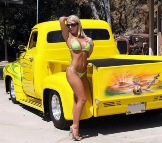 yellow vintage car blonde summer 400015489